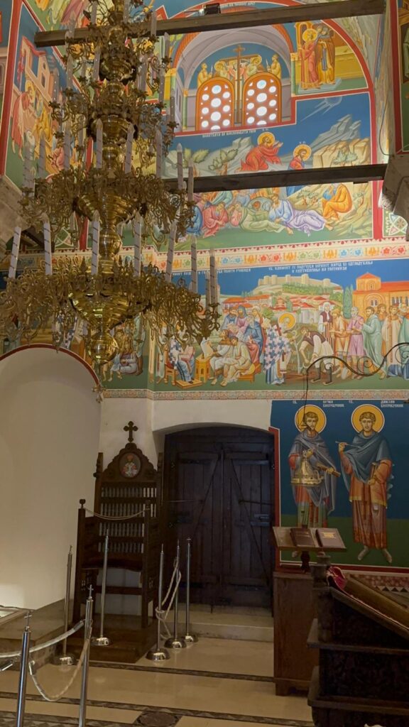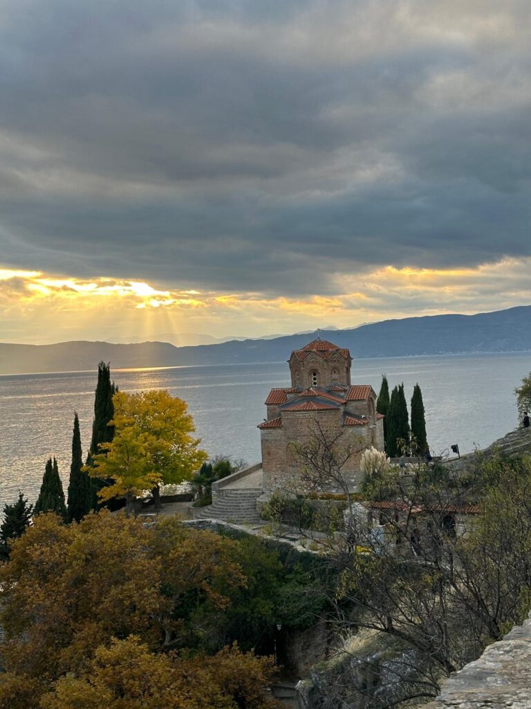 A las seis de la tarde llegamos a Ohrid, y el primer golpe de vista fue un hechizo. Desde la orilla, el lago parecía un espejo sagrado. Las cúpulas bizantinas y los techos rojizos se reflejaban en el agua como una pintura viva. Declarado Patrimonio de la Humanidad por la UNESCO, Ohrid fue durante siglos el corazón espiritual de los Balcanes: aquí se fundó una de las primeras universidades eslavas, se tradujo la Biblia al alfabeto cirílico y se levantaron más de 300 iglesias.