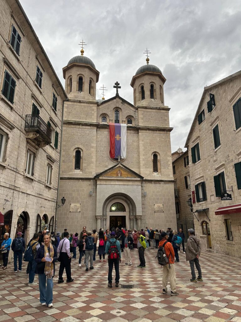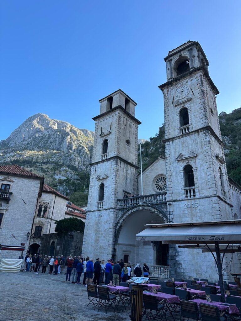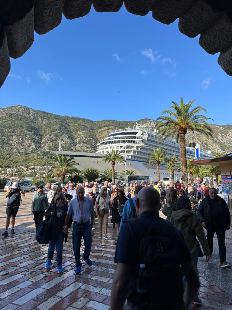 El mediodía de nuestra llegada coincidió con la entrada de un crucero gigante. Miles de turistas descendían por la pasarela, y la ciudad, de apenas 14.000 habitantes, parecía transformarse en una feria cosmopolita: tiendas de recuerdos, cafés repletos, músicos callejeros, guías que hablaban en italiano, ruso, inglés o español. Pero al caer la tarde, cuando el barco se aleja, Kotor recupera su silencio de puerto antiguo y el sonido de las campanas vuelve a dominar el aire.